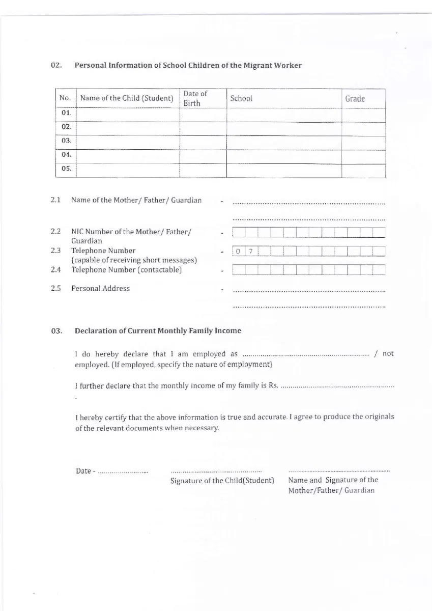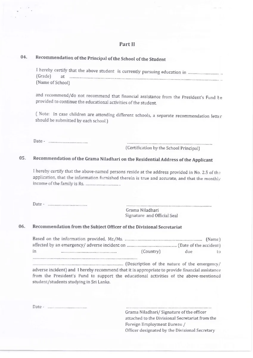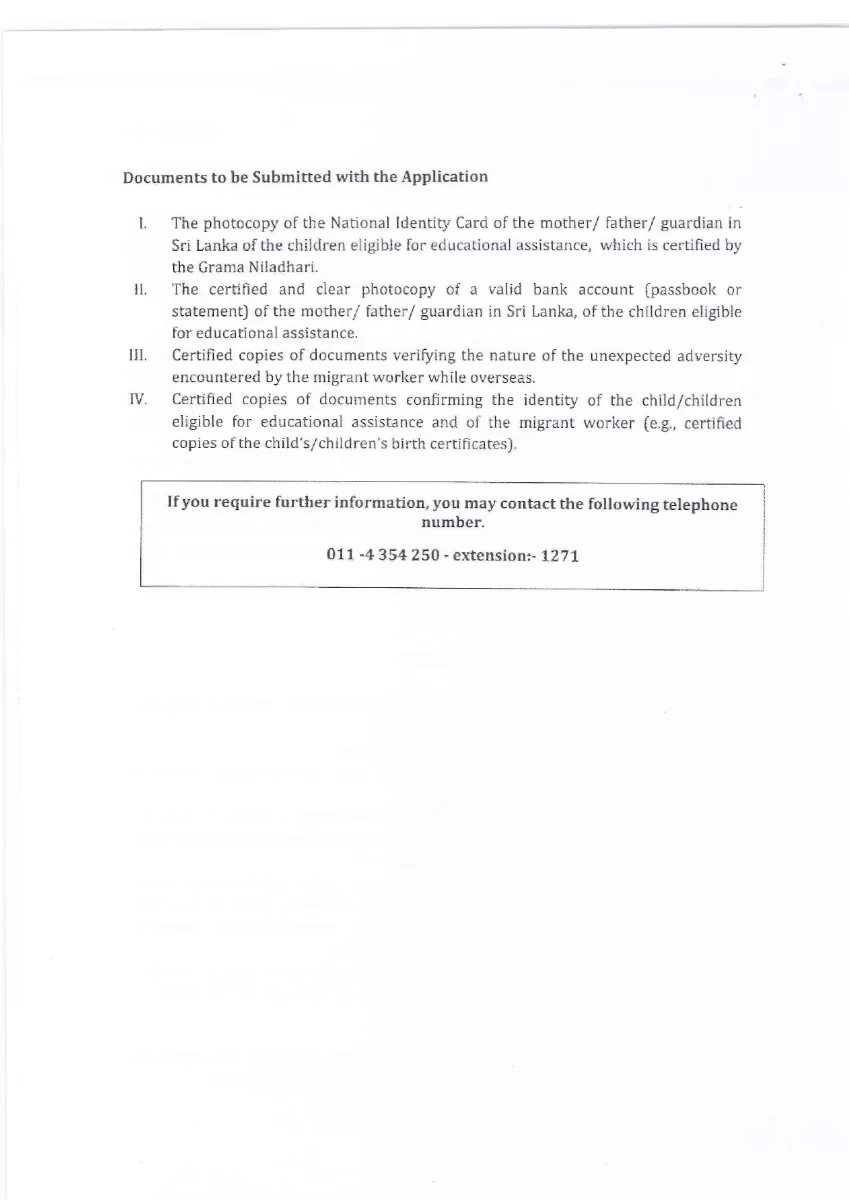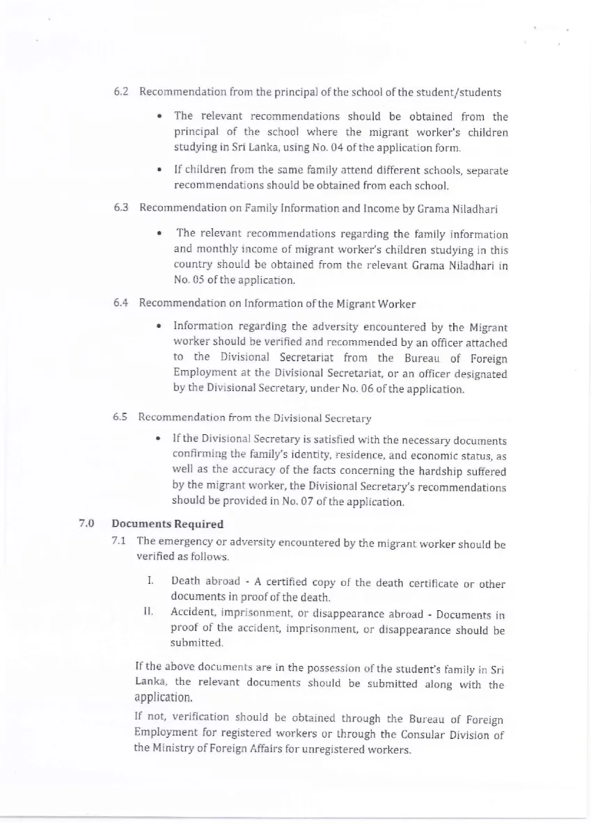 Provision of Educational Assistance from the President’s Fund for students in Sri Lanka Belonging to Families of Migrant Abroad, in Instances Where such Workers Encounter Unexpected Adversities (Death, Accidents, Imprisonment or Disappearance)