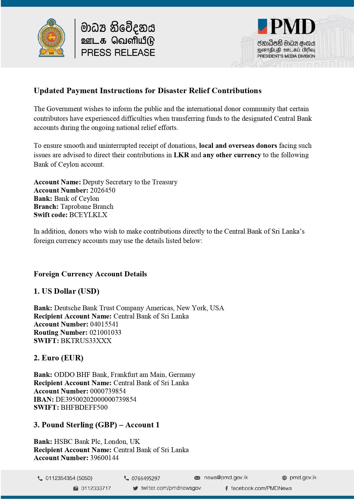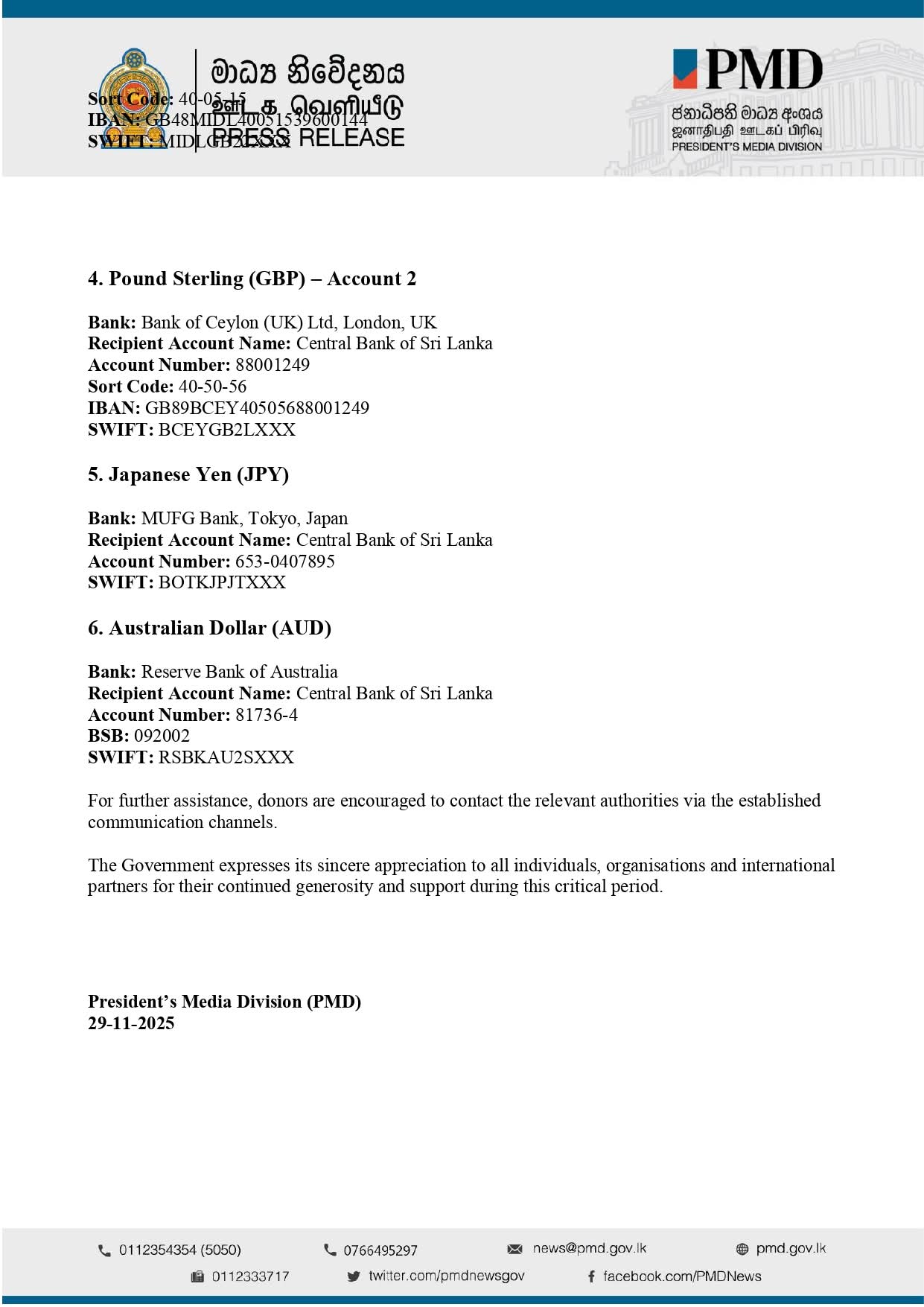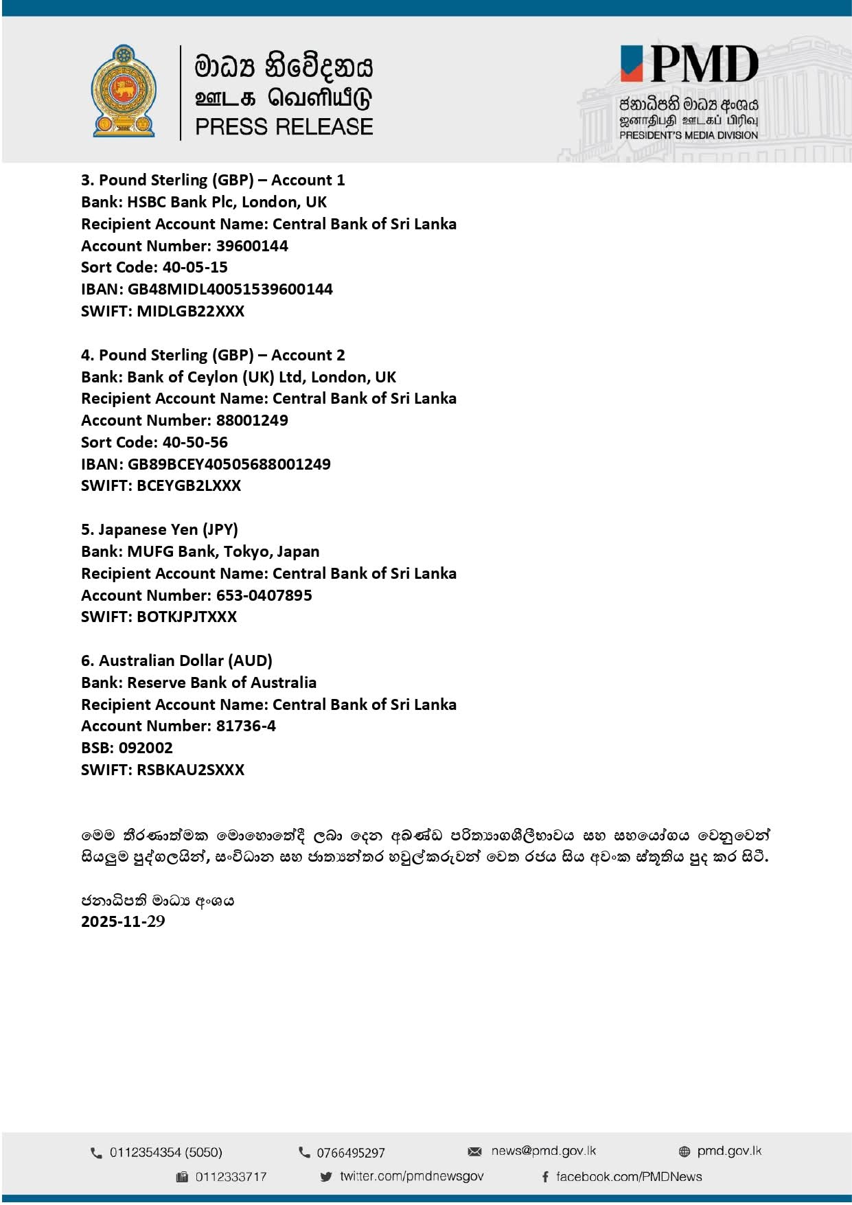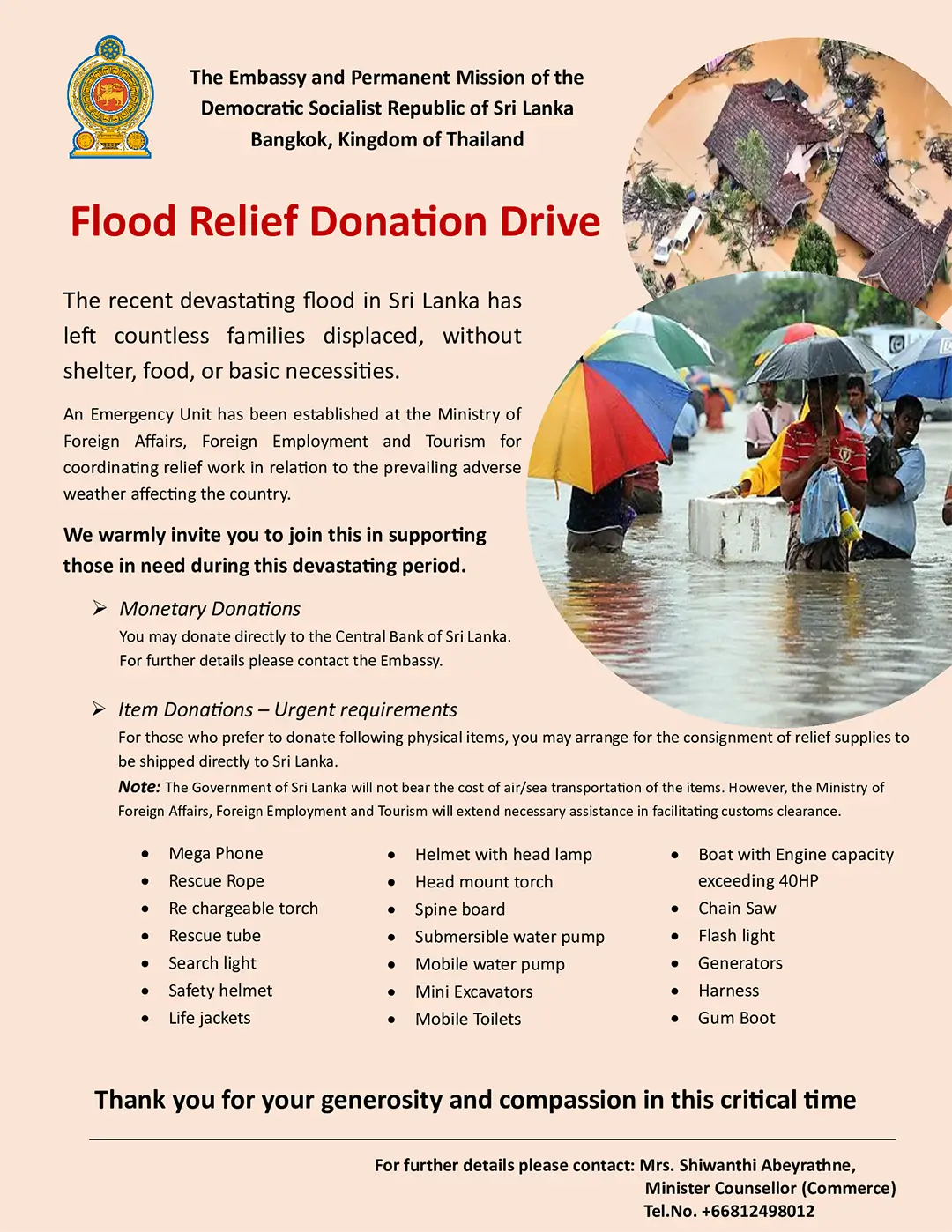 Ambassador Extraordinary and Plenipotentiary of the Democratic Socialist Republic of Sri Lanka to the Kingdom of Thailand and Permanent Representative to UNESCAP (Concurrent accredited to the Kingdom of Cambodia and Lao People’s Democratic Republic)