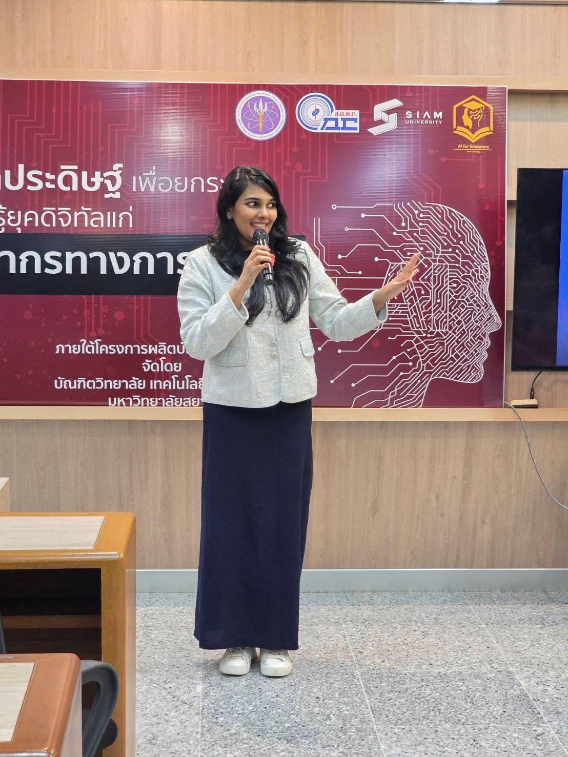 Dr. Pornchai Mongkhonvanit, President and Chancellor of Siam University, expressed his appreciation to the speaker and commended the relevance and inspirational value of the session. He noted its positive impact on students and its meaningful contribution to holistic education. In recognition of her contribution, Ms. Jayasinghe was presented with a Star Award by the President of Siam University.