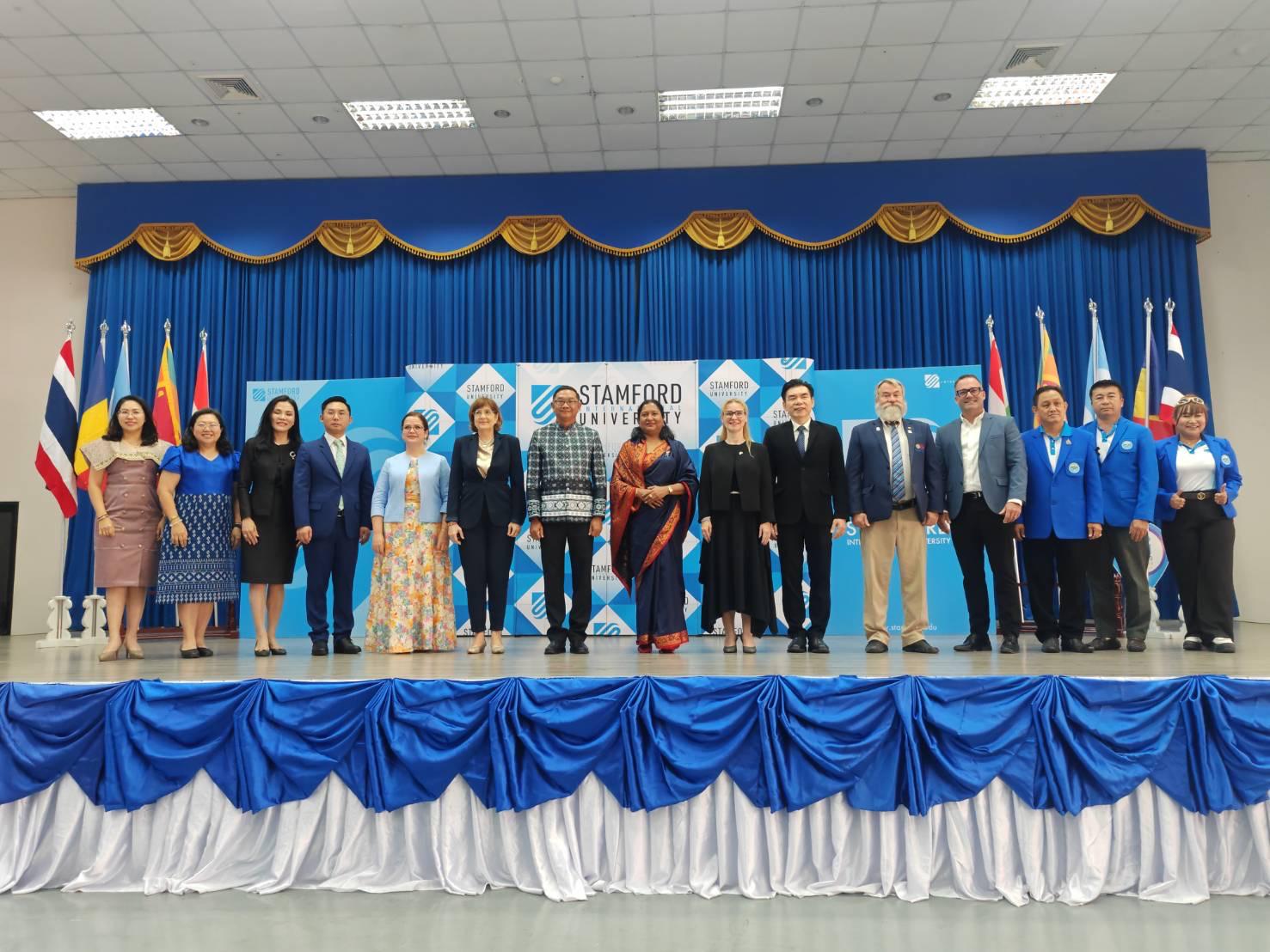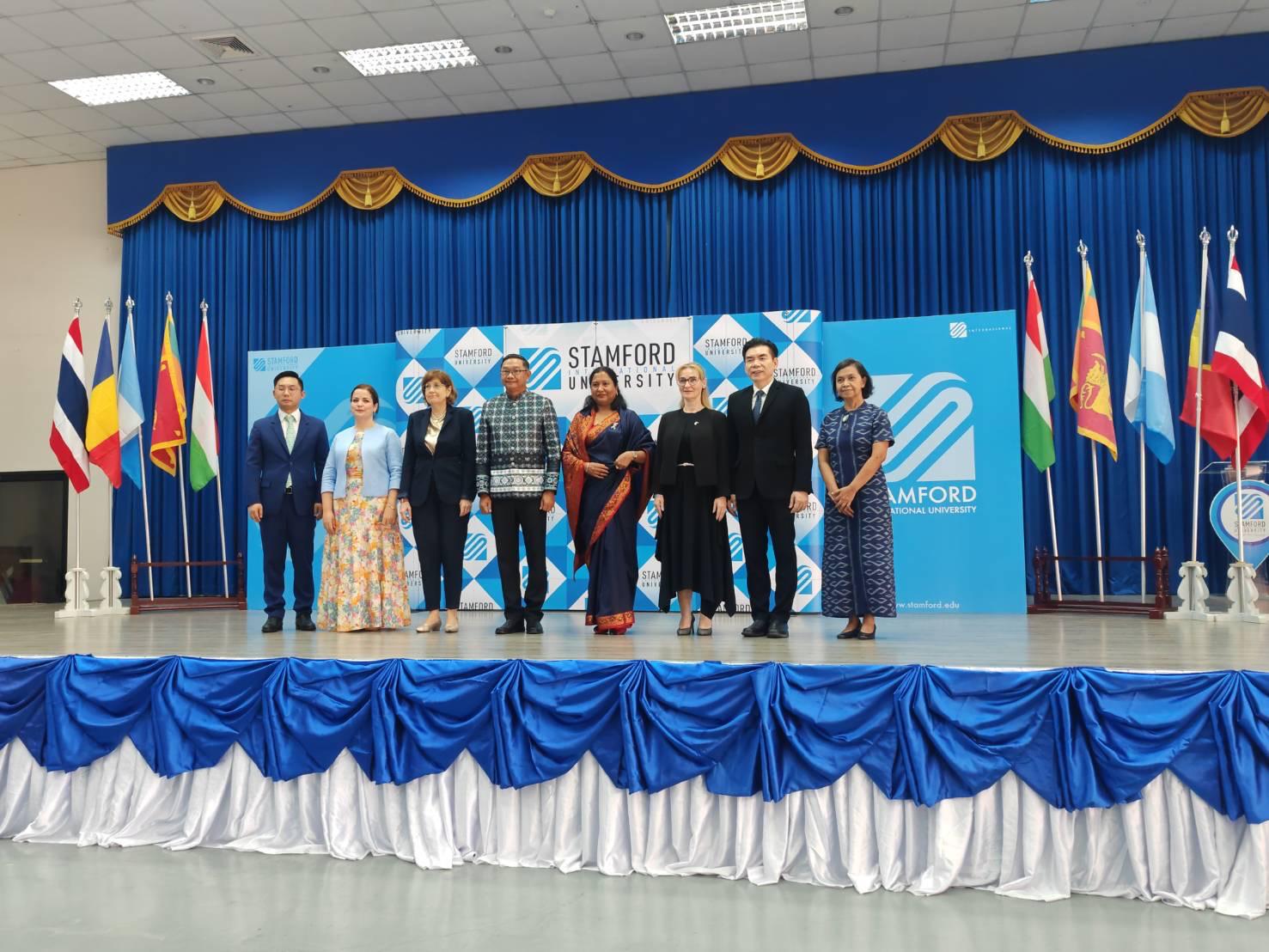 The event was officially inaugurated by Pol. Lt. Phopchanok Chalanukhro, Governor of Phetchaburi Province, while Dr. Apitep Saekow, Acting President of Stamford International University, delivered the welcome remarks, setting the tone for a dynamic and thought-provoking programme attended by Ambassadors, university representatives, students, and local stakeholders from Hua Hin and Phetchaburi.