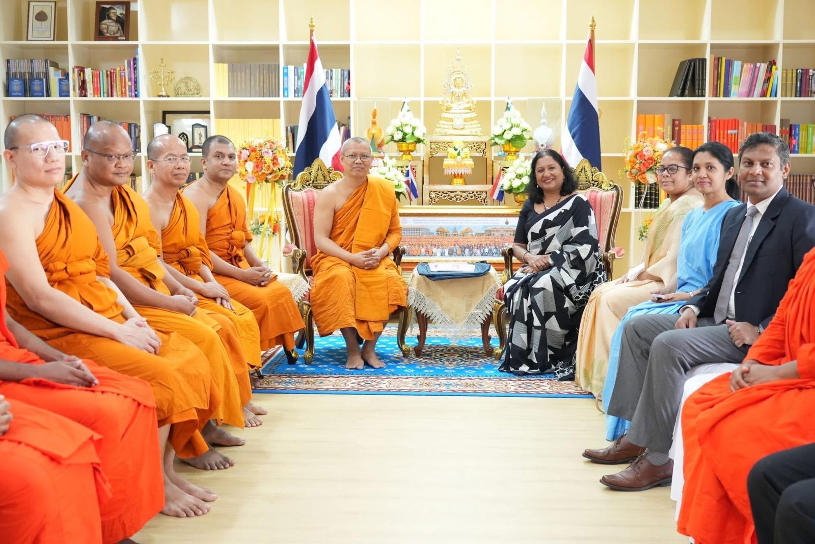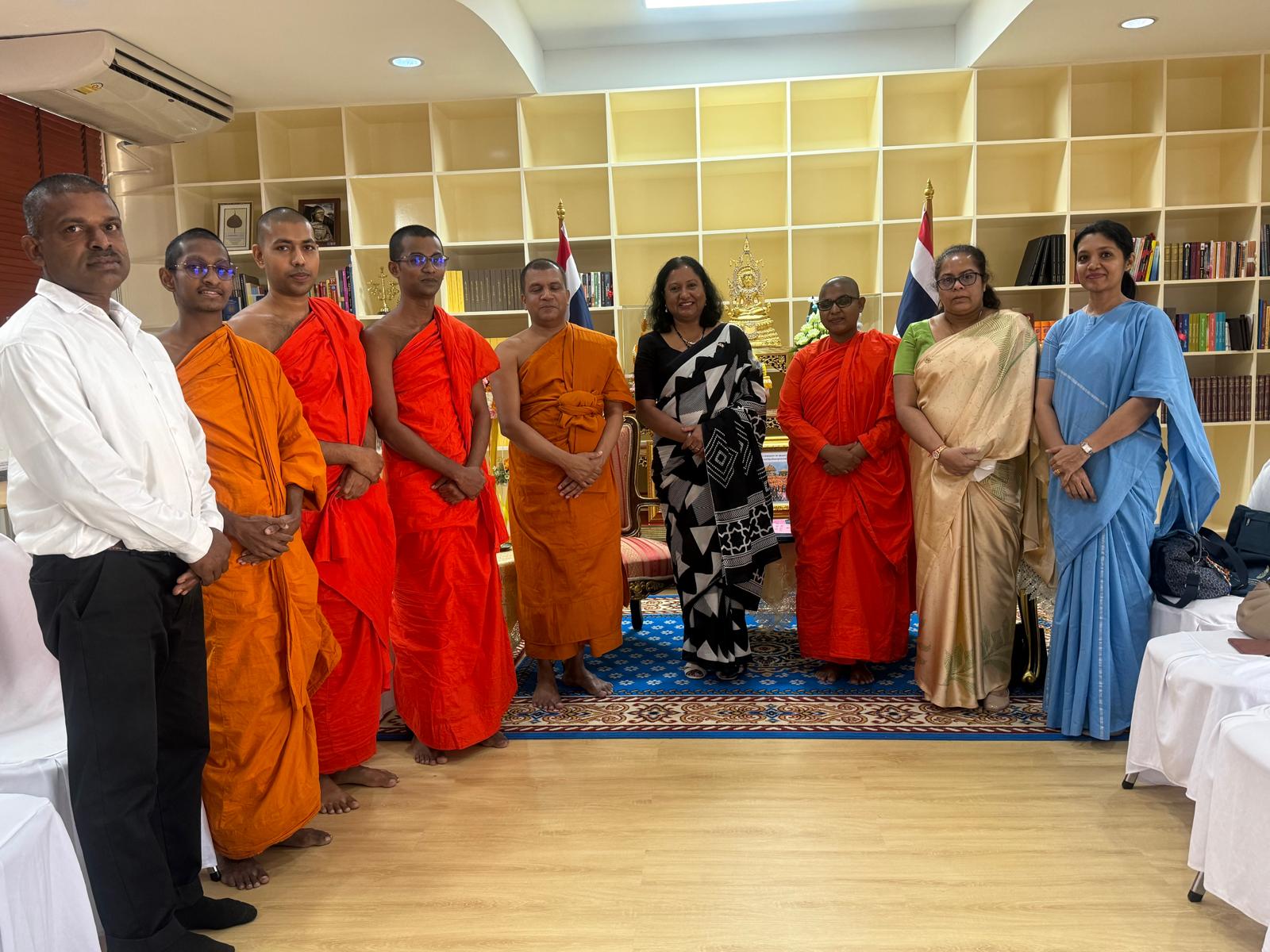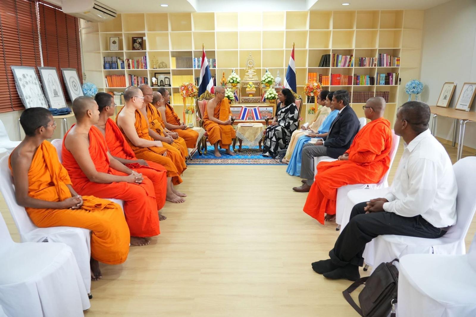 Upon arrival at the University, the Ambassador was warmly welcomed by Phrama Surasak Pajantasen, Vice Rector for the Foreign Affairs of the University, Ven. Dr. Seng Hurng Narindo, Director of Dhammaduta College and Ven. Dr. Walmoruwe Piyarathana Thero, Senior Lecturer of the University. During the visit, Ambassador met with eight Sri Lankan Buddhist monks, including a Bhikkhuni (nun), who are currently pursuing studies in Buddhist philosophy, Pali, Sanskrit, and related disciplines at MCU, reflecting the University’s role as a centre of excellence for international Buddhist education.
